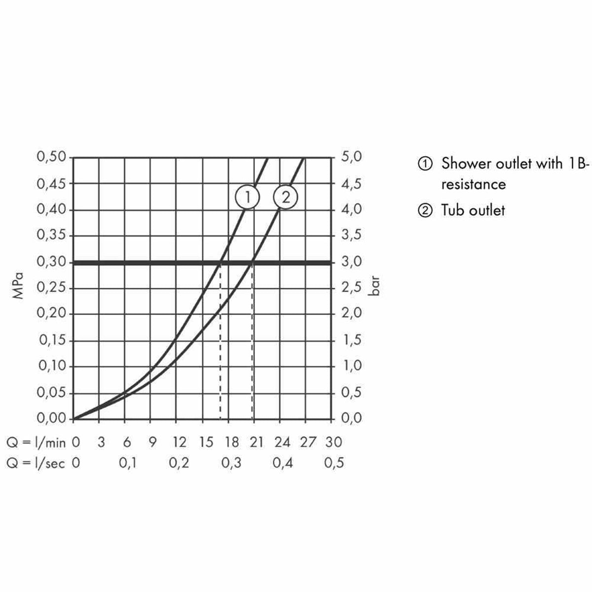 - Flow rate for bath spout at 3 bar: 21 l/min