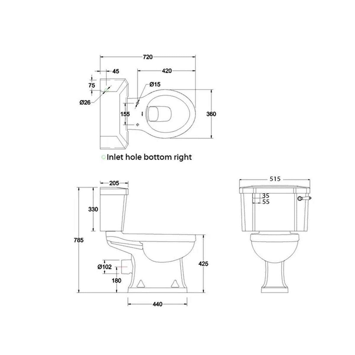 | Includes | P5 - Close Coupled Pan, C2 - Close coupled/low-level cistern 51cm with front button including cistern fittings |