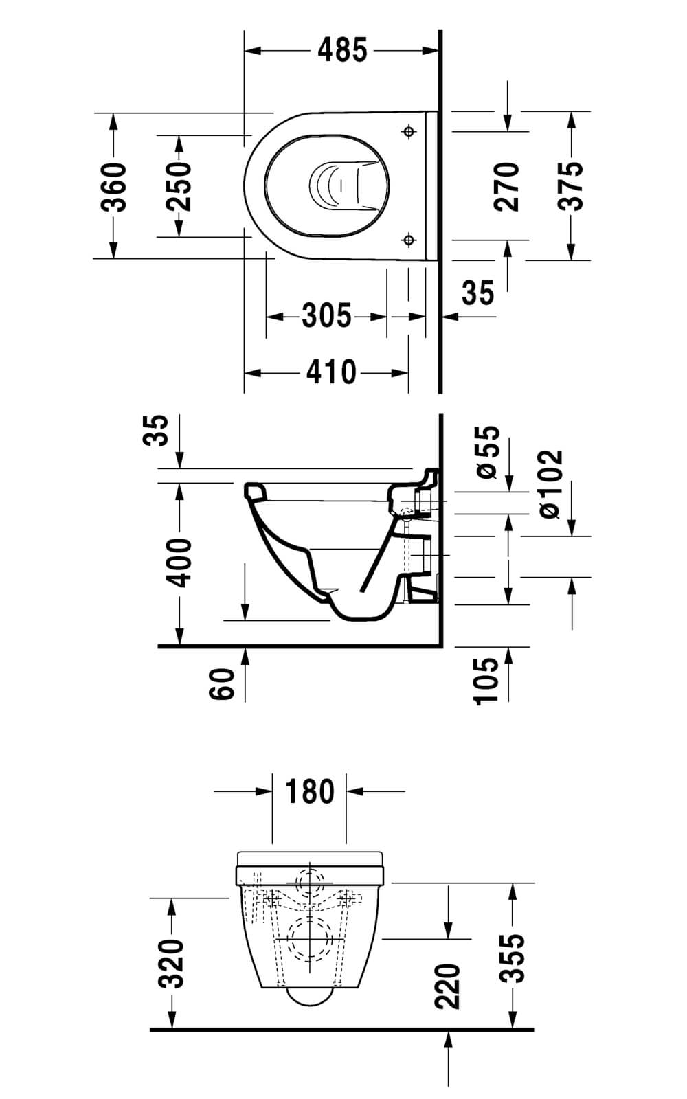 Luxe Duravit Starck 3 Wall Hung Toilet - 360mm Toilet With 4.5 Litre Flush