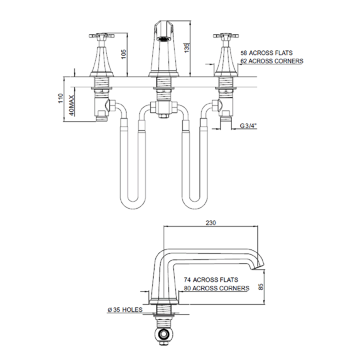 Designed for deck-mounted, three-hole installation, this Bath Filler Tap effortlessly merges traditional charm with modern reliability, elevating any bathroom with Deco-inspired elegance and enduring performance.