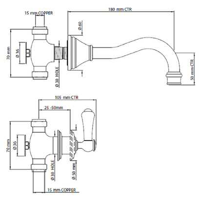 The 1/4 turn ceramic disc flow control delivers smooth and reliable water operation, while the vernier insert guarantees precise handle alignment. This tap seamlessly combines traditional aesthetics with modern performance.