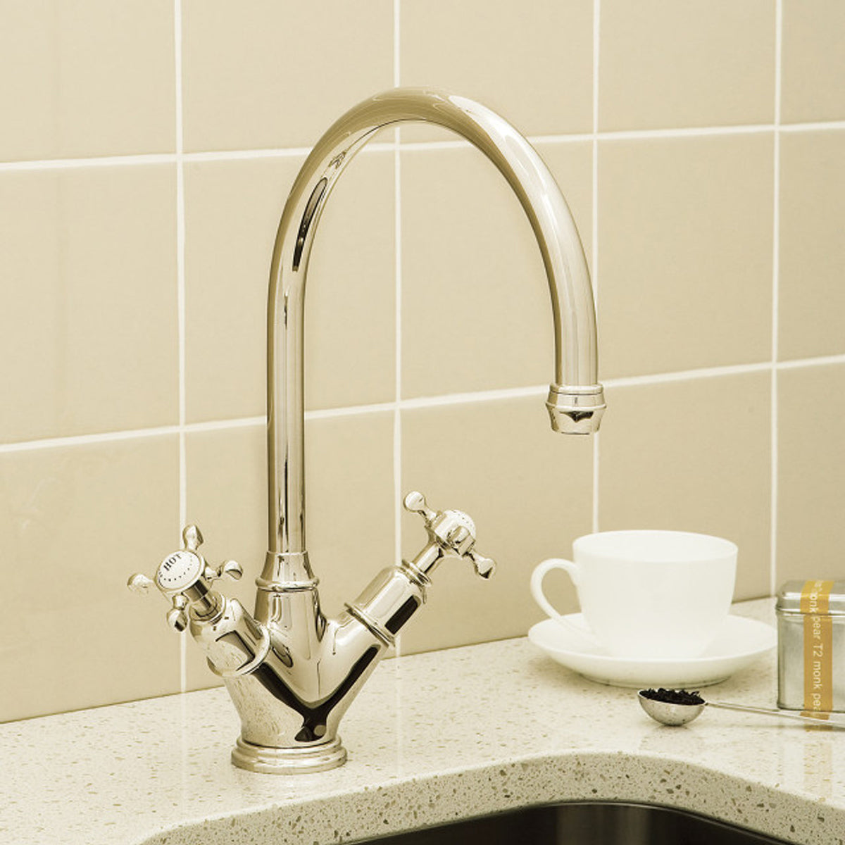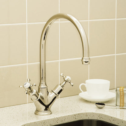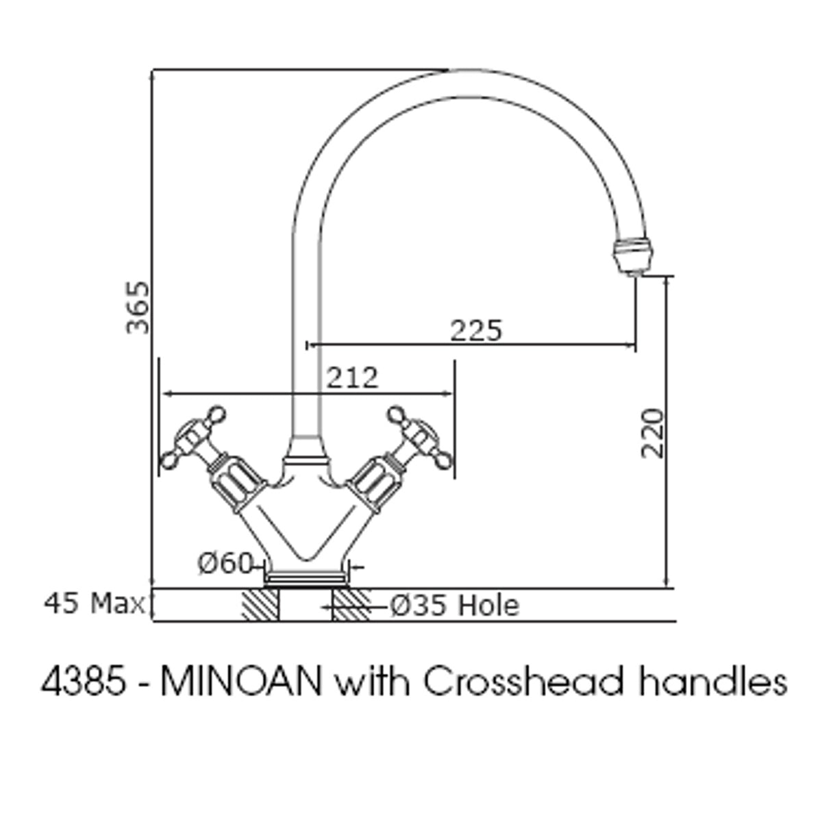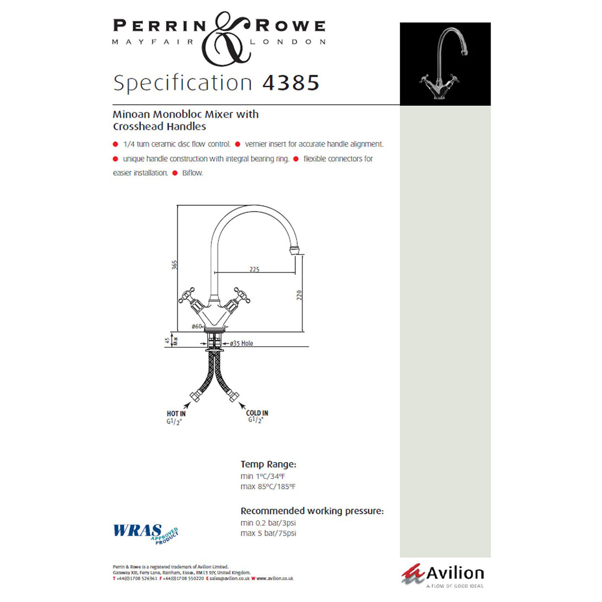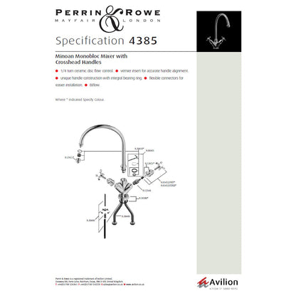 The Perrin & Rowe Minoan 4385 Mixer Tap is crafted for superior functionality and aesthetics, featuring distinctive crosshead handles.
