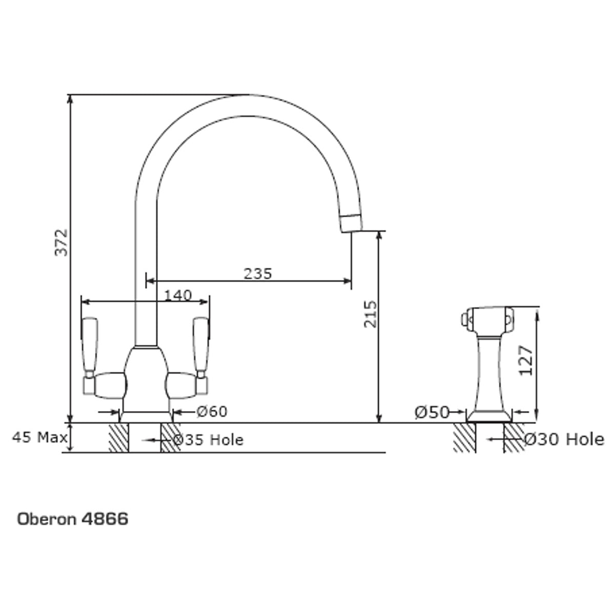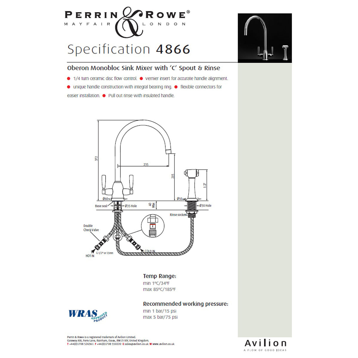 Perrin & Rowe Oberon - C Spout 4866 (with Rinse) Kitchen Tap