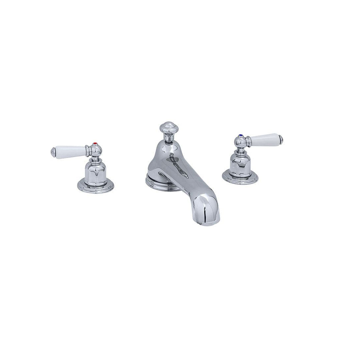 The Perrin & Rowe Three Hole Bath Tap Set is designed for deck mounting with a low profile spout, adding elegance to any bathroom.