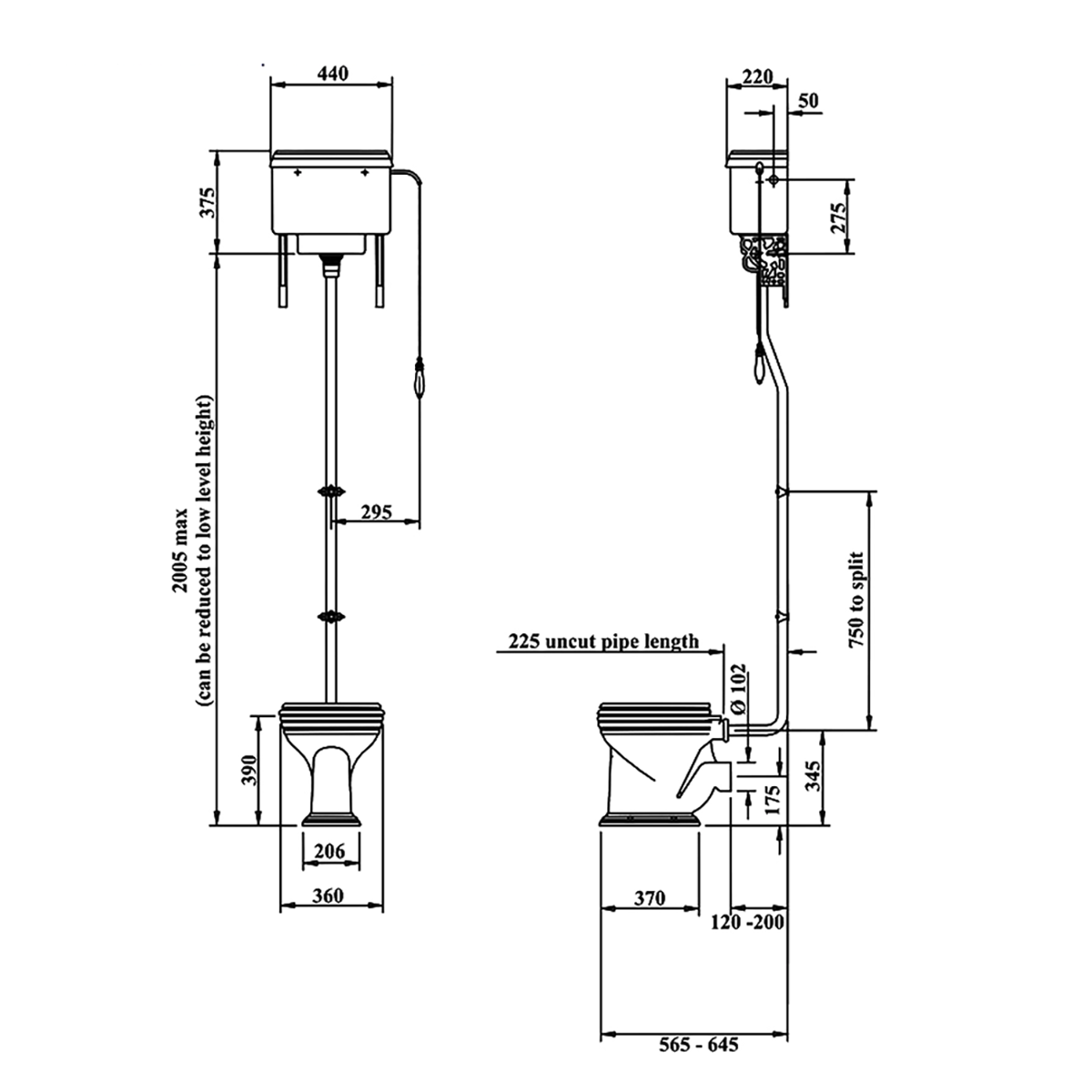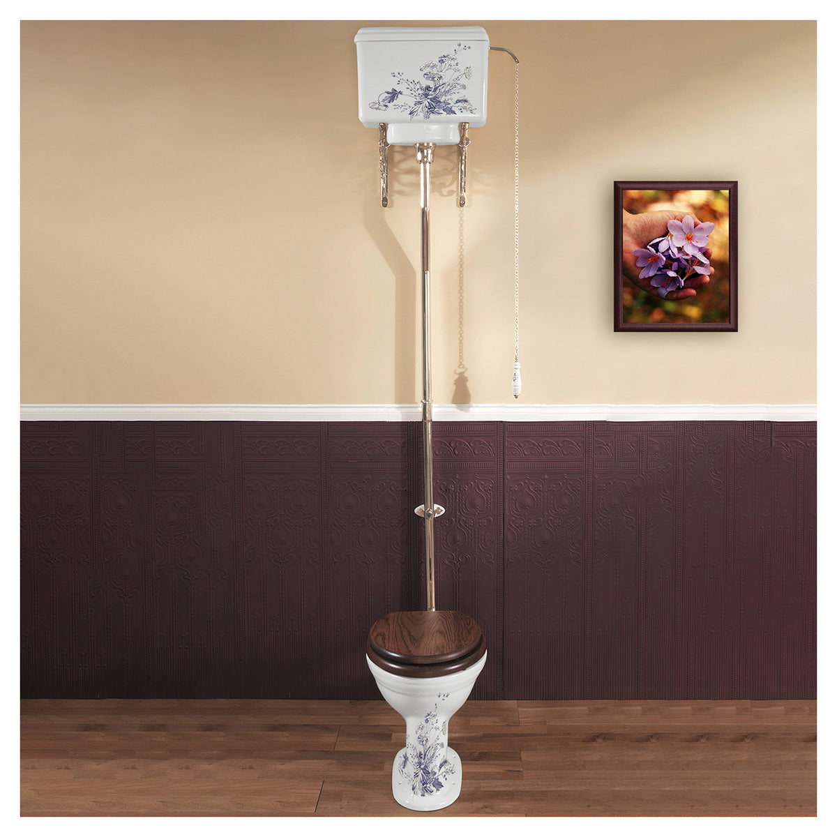 The Silverdale Victorian VCCLOHL6WHIBP Blue Garden High Level Pan with Cistern and Fittings features a beautiful Blue Garden pattern on both the pan and cistern.